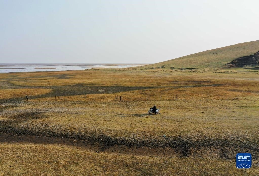 5月10日,徐沃德樂胡騎著摩托在管護(hù)站附近巡護(hù)(無人機(jī)照片)。