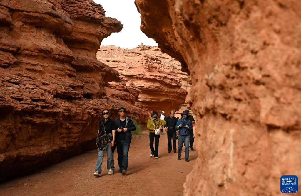 5月13日,游客在內(nèi)蒙古阿拉善盟阿拉善左旗西部夢幻峽谷景區(qū)參觀游玩。