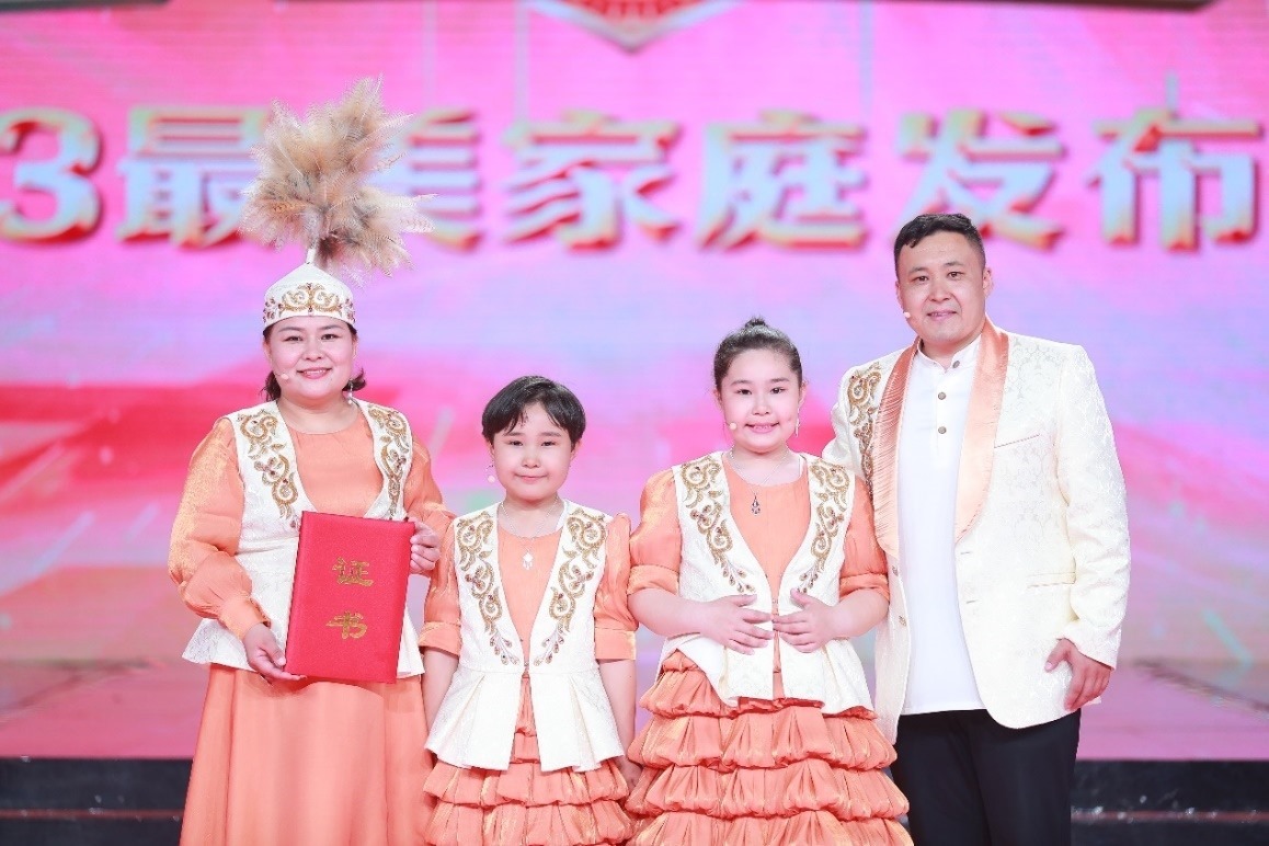 本次發(fā)布儀式以“激揚家國情,奮斗新征程”為主題,通過真實的人物短片、生動的現(xiàn)場訪談、豐富多樣的文藝節(jié)目,從不同側(cè)面講述了10戶最美家庭的感人故事和家庭成員的工作生活感悟。這10戶最美家庭是全國婦聯(lián)揭曉的2023年全國最美家庭中的典型代表,他們中有的飛天圓夢,用愛與奉獻書寫家國情深;有的傳承紅色家風,秉持“永遠跟黨走”的家訓(xùn);有的筑路興國,祖孫三代風雨同舟初心不改;有的傳承創(chuàng)新,接力守護中華優(yōu)秀傳統(tǒng)文化;有的為國戍邊,打造半個世紀不換防的“護邊驛站”;有的倡揚移風易俗,示范踐行“不要彩禮要幸?!钡奈拿餍嘛L;有的清正廉潔,用實際行動守護和傳承著“忠”“孝”“廉”的優(yōu)良家風;有的用誠信播種,助力糧食增產(chǎn)豐收;有的以書香潤家,播撒讀書立人的教育理念;有的跋山涉水,用阿肯彈唱助力民族團結(jié)……他們在家庭中積極踐行社會主義核心價值觀,在各行各業(yè)立足崗位發(fā)揚勞動精神、奮斗精神、奉獻精神、創(chuàng)造精神、勤儉節(jié)約精神,貢獻突出、事跡感人,充分展示了家庭昂揚奮進新時代新征程的良好精神風貌。