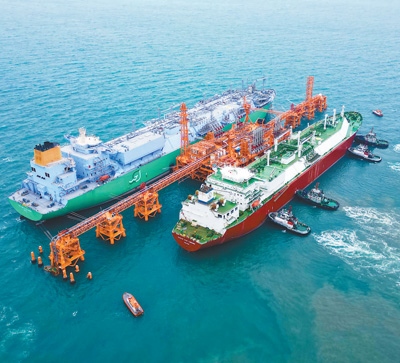 香港液化天然氣項目主要包括一座導管架形式的雙泊位海上液化天然氣接收站碼頭、一座陸地液化天然氣接收站和兩條海底管道。液化天然氣運輸船在碼頭卸料后進行儲存再氣化,通過海底管道對接香港兩座大型發(fā)電廠,提供穩(wěn)定、清潔的發(fā)電燃料。
