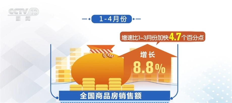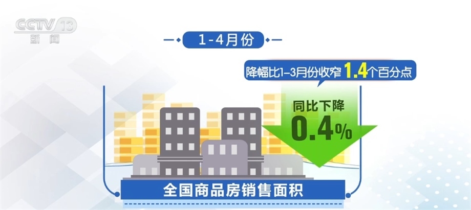 從銷售看,隨著政策效應(yīng)逐步顯現(xiàn),以及前期疫情積累的需求釋放,1—4月份,全國商品房銷售面積同比下降0.4%,降幅比1—3月份收窄1.4個(gè)百分點(diǎn)。銷售額增長8.8%,增速比1—3月份加快4.7個(gè)百分點(diǎn)。
