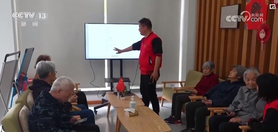 在上海普陀區(qū)長(zhǎng)風(fēng)街道,社區(qū)工作人員正在和外賣平臺(tái)工作人員集體培訓(xùn)老年人用手機(jī)APP的“長(zhǎng)輩模式”來(lái)解決點(diǎn)餐、買(mǎi)菜、買(mǎi)藥等日常生活需要。