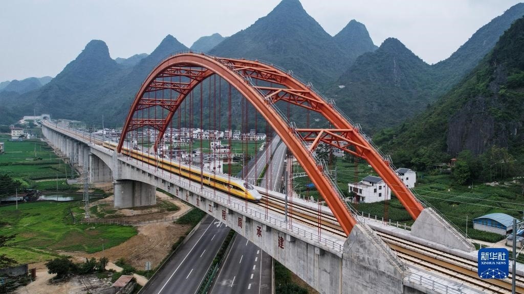 5月16日,高速綜合檢測列車駛出南寧東站。