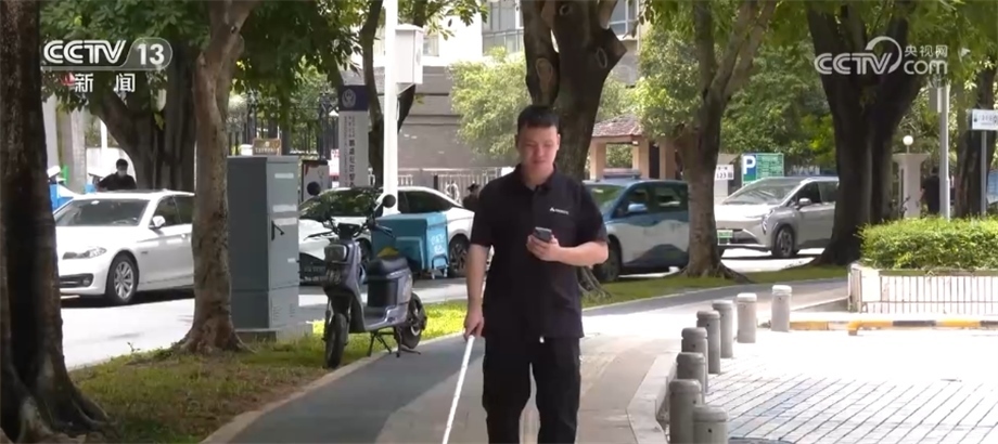 深圳市信息無障礙工程師 沈廣榮:在我們使用電子地圖過程中,我們偏離了導航的方向,地圖就會以震動的反饋告訴我們往什么方向偏離了什么角度,去提示我這個路線是錯的。用這個震動去模擬觸覺反饋,我們使用這個功能的時候就跟牽了一只導盲犬一樣。