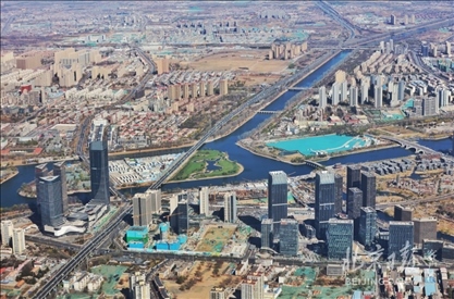 今天,古塔腳下,新城崛起。登臨五河交匯處的高樓觀景平臺,憑欄眺望,只見運河水道兩側(cè),現(xiàn)代化樓宇鱗次櫛比。這里是城市副中心運河商務(wù)區(qū)所在地,20679家注冊企業(yè)入駐、包括國家級綠色交易所在內(nèi)的一批重大項目相繼落戶,為其注入勃發(fā)生機。