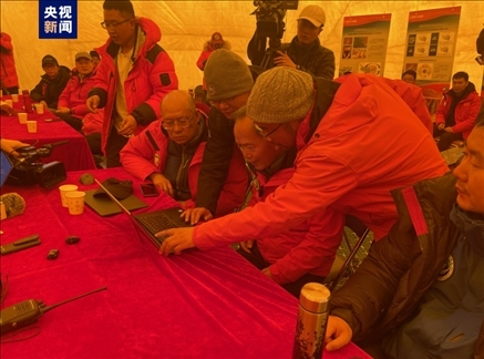 5月23日上午,2023“巔峰使命”珠峰科考登山隊(duì)員正在海拔8830米世界海拔最高的自動(dòng)氣象站做技術(shù)升級(jí)。