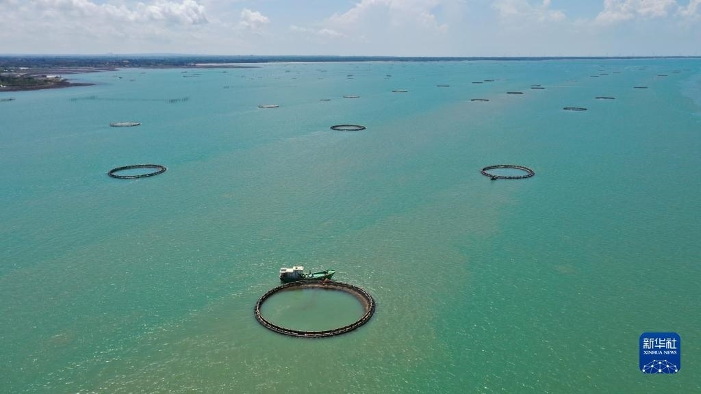 湛江徐聞西連鎮(zhèn)的“海上牧場”(5月27日攝,無人機照片)。