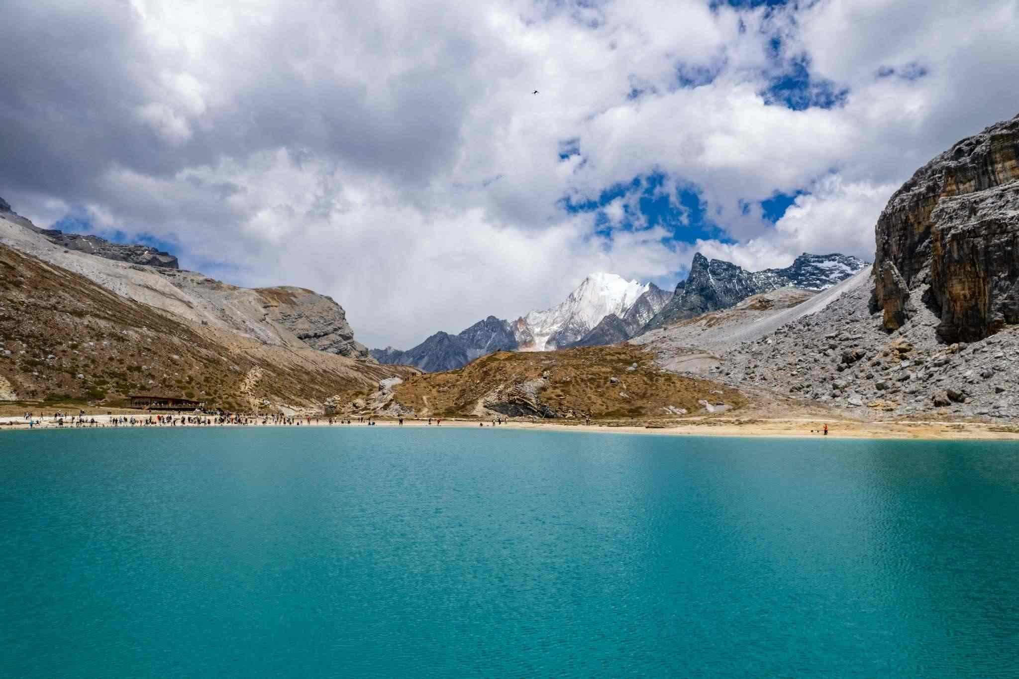 四川甘孜:陽光照射牛奶海 湖面波光粼粼