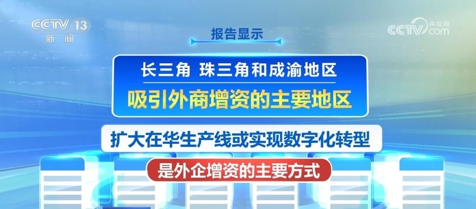 報(bào)告顯示,長三角、珠三角和成渝地區(qū)是吸引外商增資的主要地區(qū)。擴(kuò)大在華生產(chǎn)線或?qū)崿F(xiàn)數(shù)字化轉(zhuǎn)型是外企增資的主要方式。超七成受訪企業(yè)表示在華產(chǎn)業(yè)鏈布局將維持現(xiàn)狀或?qū)?duì)在華產(chǎn)業(yè)鏈進(jìn)一步本土化。