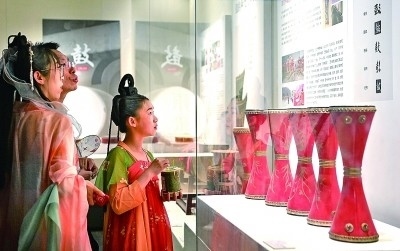 游客在陜西西安市鐘鼓樓博物館參觀鼓文化展。新華社發(fā)