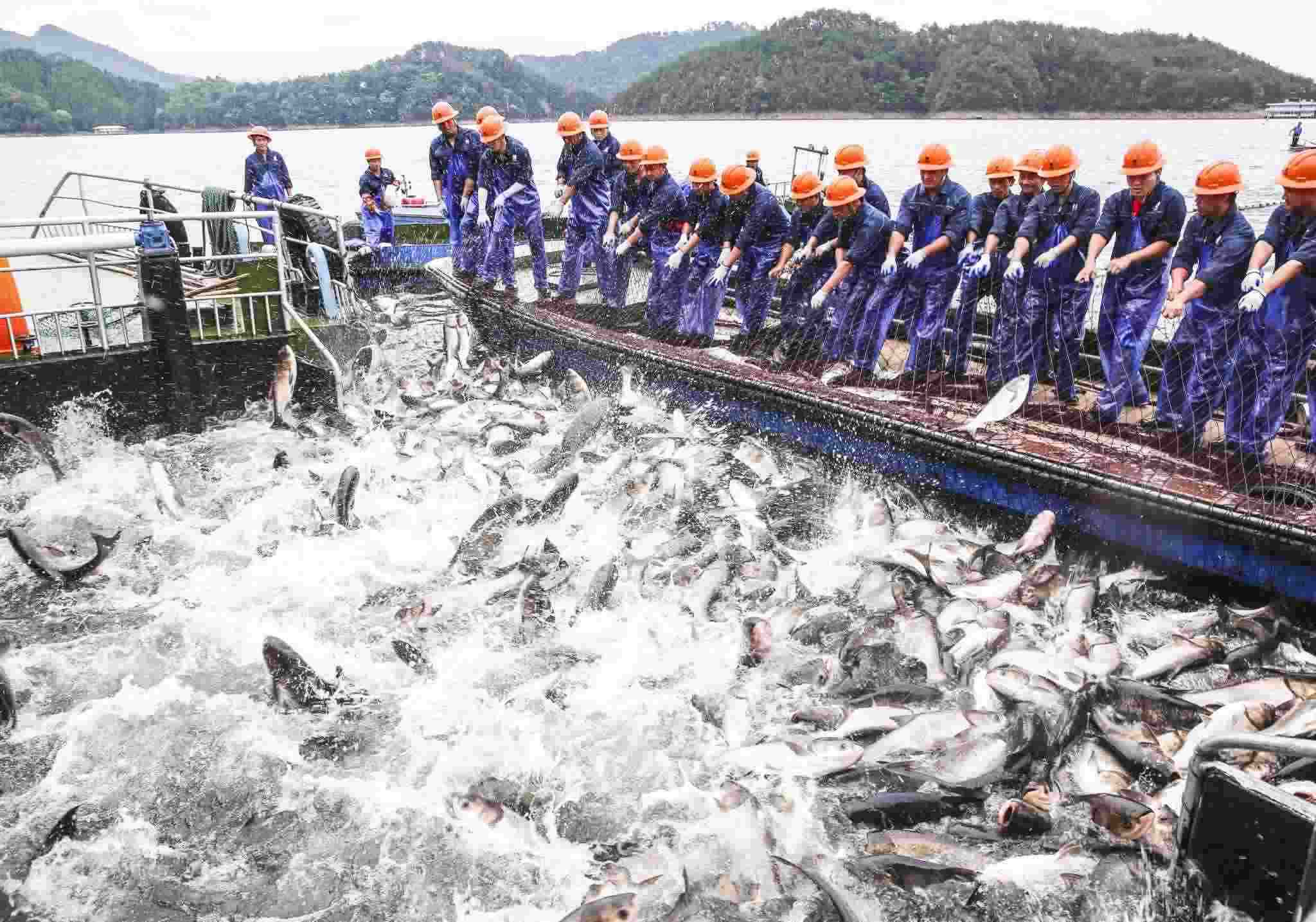 杭州:千島湖再現(xiàn)“巨網(wǎng)捕魚”景象