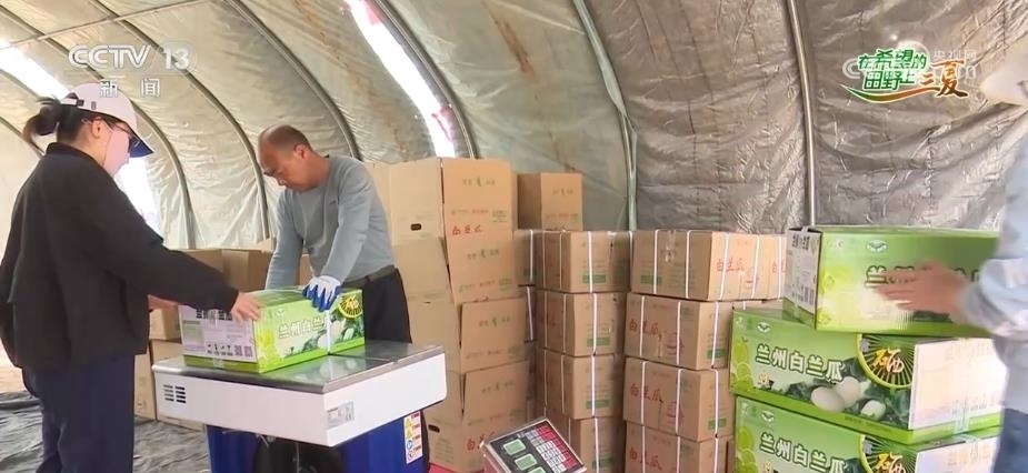 在蘭州市皋蘭縣什川鎮(zhèn),瓜農(nóng)們一大早就開始進(jìn)棚采摘白蘭瓜。什川鎮(zhèn)地處黃河流域,海拔高、光照時間長、晝夜溫差大。今年,這里的白蘭瓜長勢喜人。在瓜地旁的收購現(xiàn)場,農(nóng)戶們忙著裝箱、打包、稱重、裝車,發(fā)往全國各地。