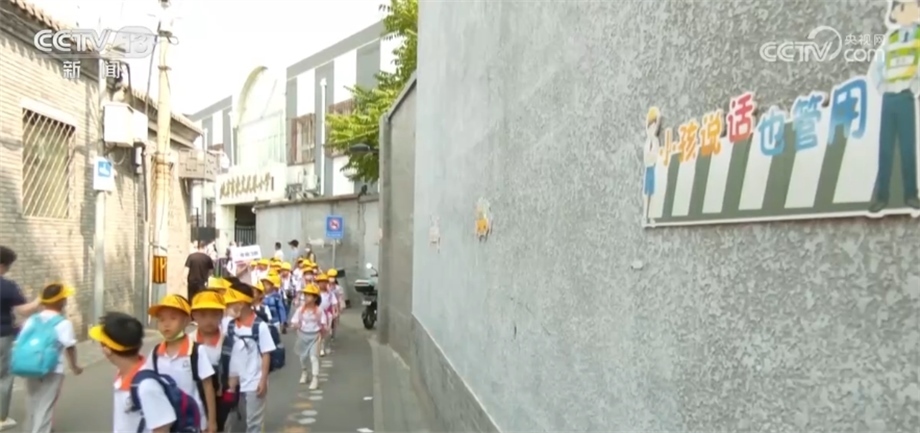 在北京東城小報(bào)房胡同有一條彩色的步道,就是專門為身高1米左右的低年級(jí)小學(xué)生設(shè)置的。