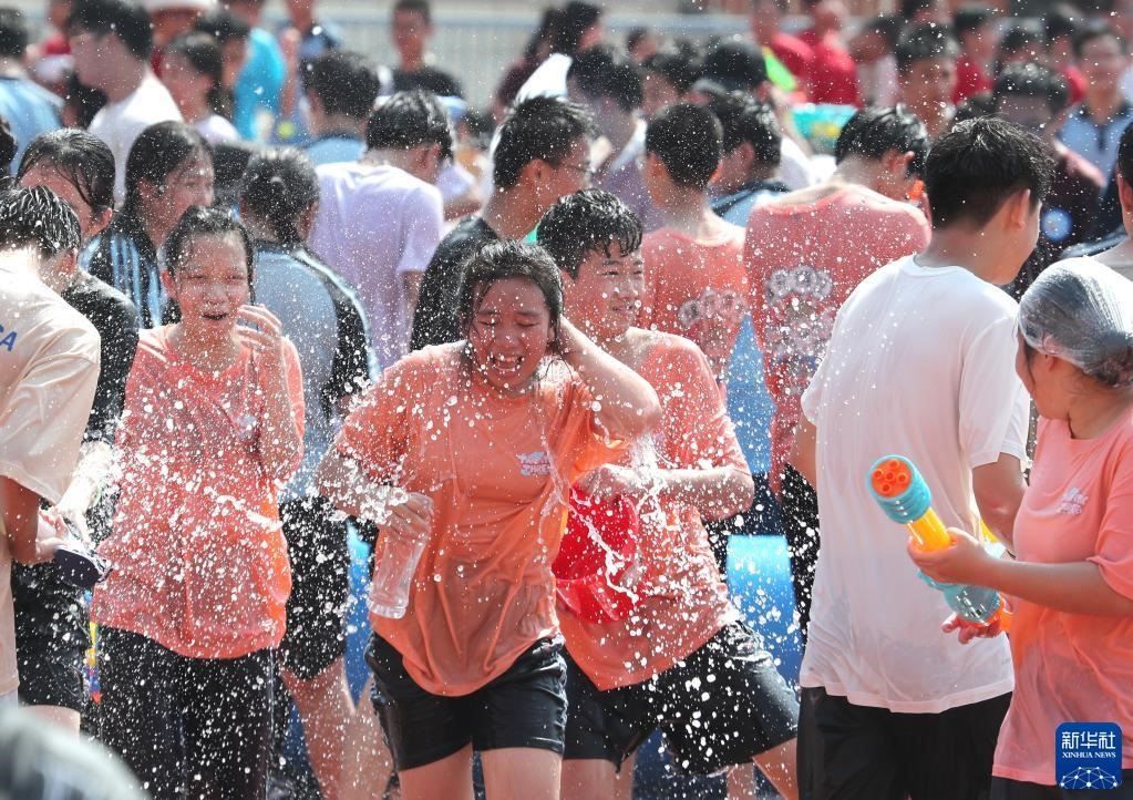 當(dāng)日,廣西南寧市第三中學(xué)初中部青秀校區(qū)組織1500多名初三學(xué)生,在校園舉行潑水活動,以獨特方式讓學(xué)生們減輕考前壓力。