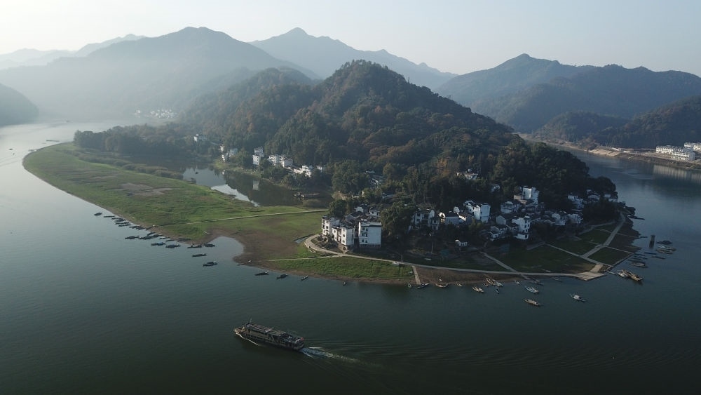 這是2019年11月16日拍攝的位于安徽的新安江山水畫廊(無人機(jī)照片)。新華社記者 張端 攝
