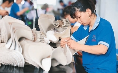 今年以來,福建省福州市倉(cāng)山區(qū)持續(xù)優(yōu)化營(yíng)商環(huán)境,進(jìn)一步加大出口退稅支持力度,為企業(yè)提供精準(zhǔn)服務(wù),助力出口外貿(mào)企業(yè)積極開拓海外市場(chǎng)。圖為倉(cāng)山區(qū)一家鞋企生產(chǎn)車間內(nèi),工人在生產(chǎn)出口女靴。