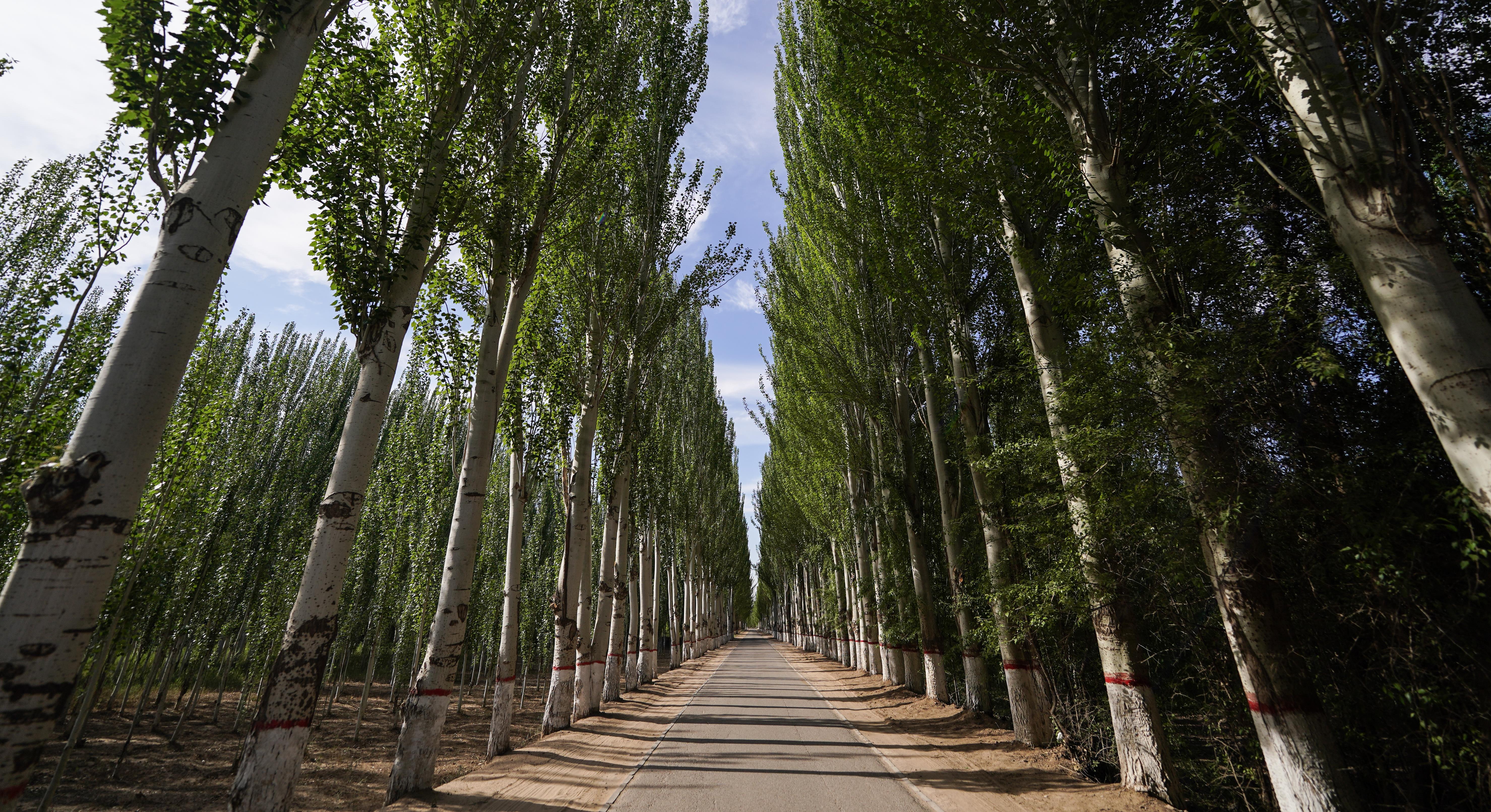 △內(nèi)蒙古巴彥淖爾市臨河區(qū)國營新華林場(chǎng)的防護(hù)林(總臺(tái)國廣記者李晉拍攝)
