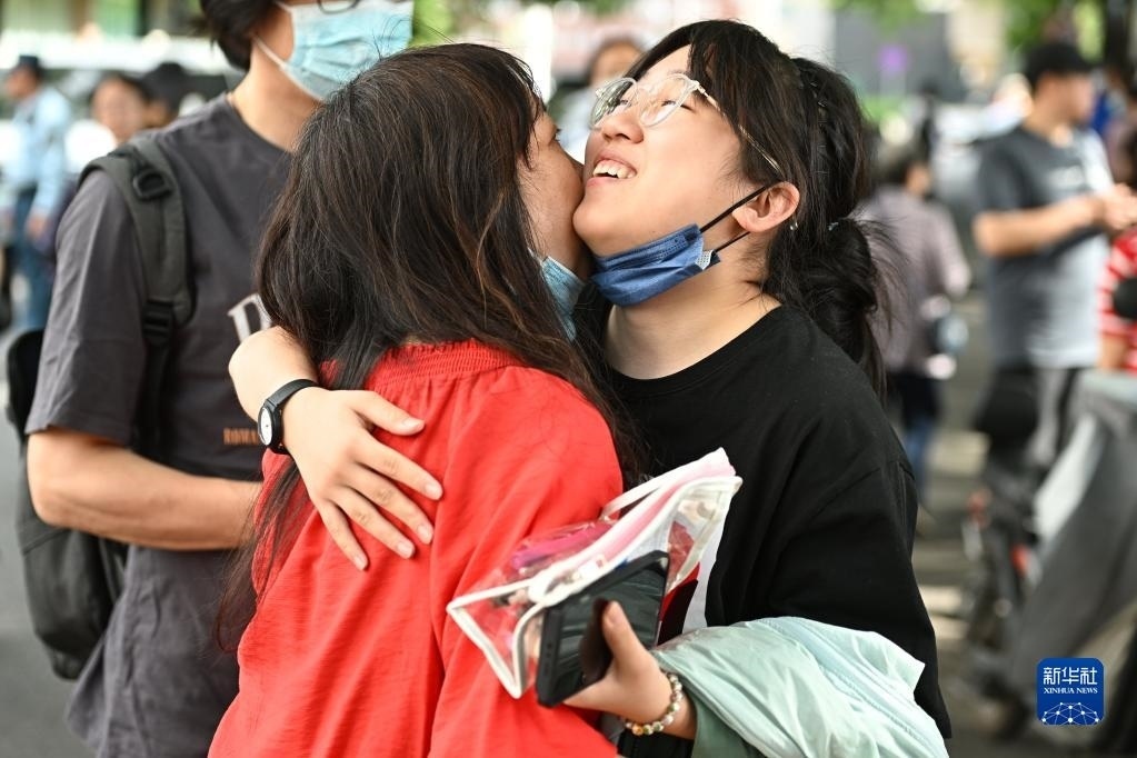 6月7日,在吉林省長(zhǎng)春市五十六中學(xué)考點(diǎn),考生入場(chǎng)前與家長(zhǎng)擁抱。