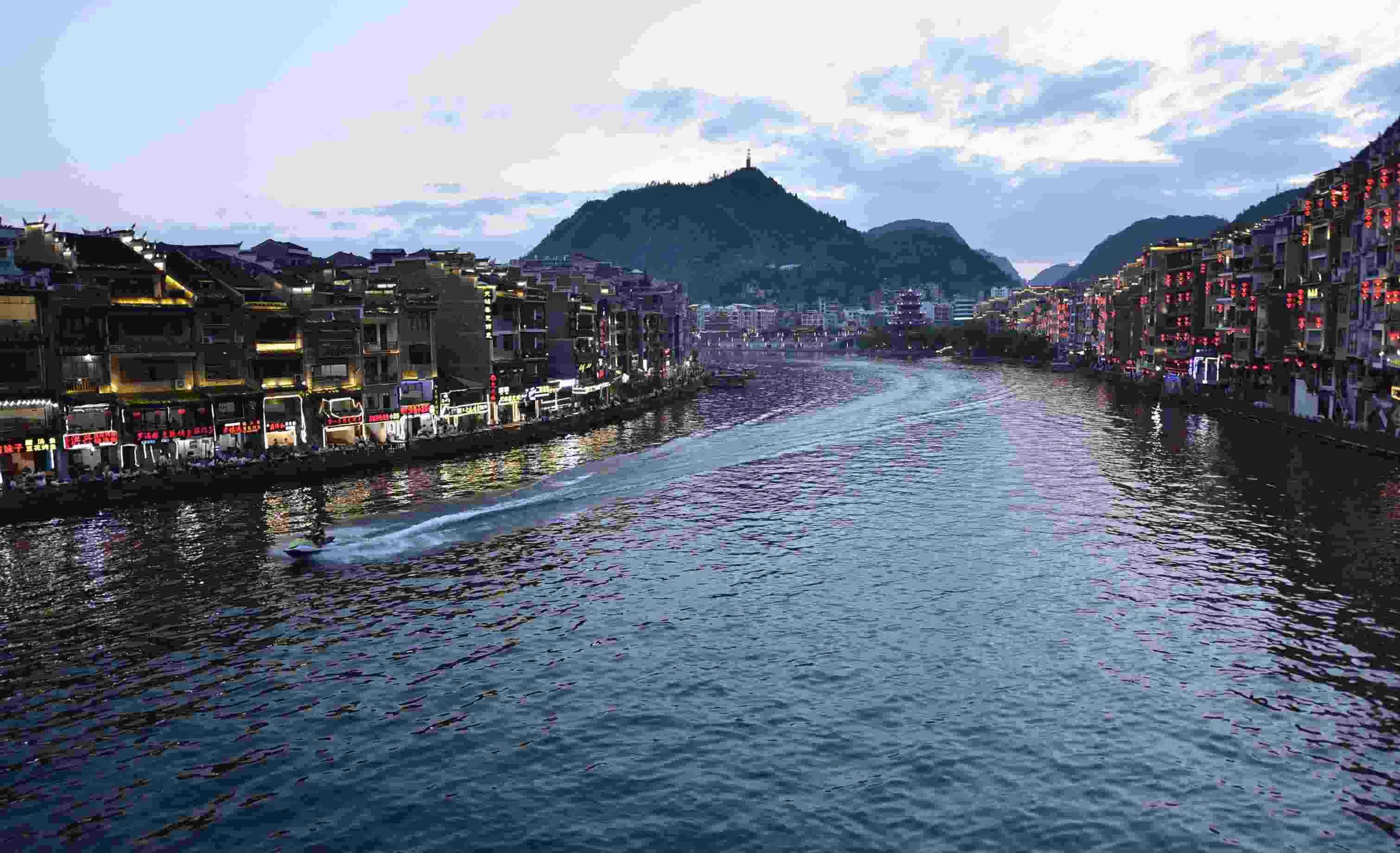 2023年6月6日拍攝的貴州省鎮(zhèn)遠(yuǎn)古城夜色。