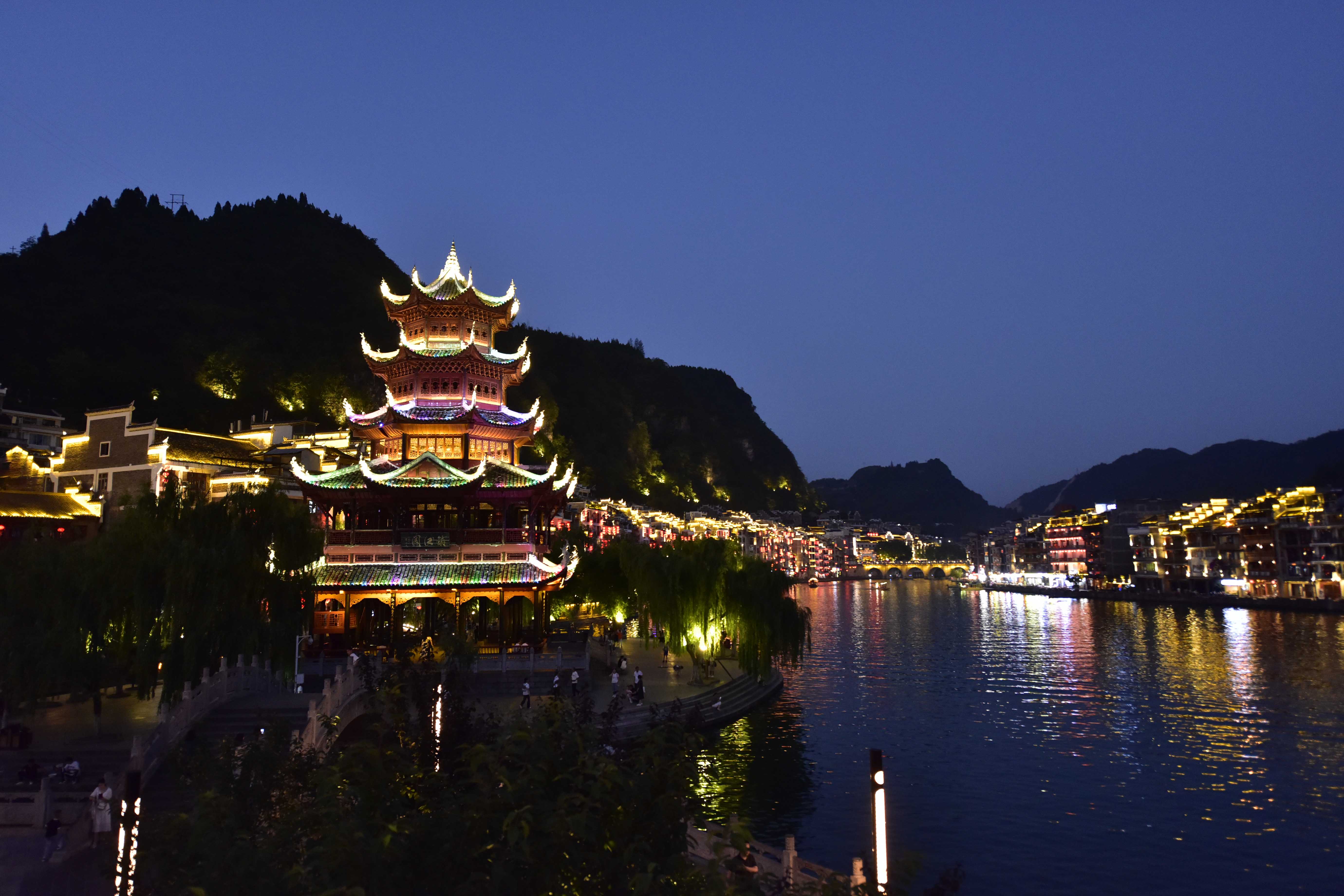 鎮(zhèn)遠(yuǎn)古城位于貴州省黔東南苗族自治州鎮(zhèn)遠(yuǎn)縣,據(jù)記載已有2280多年歷史。夜幕下的鎮(zhèn)遠(yuǎn)古城流光溢彩,璀璨奪目,宛如人間仙境。(寧堅 吳昌軍)