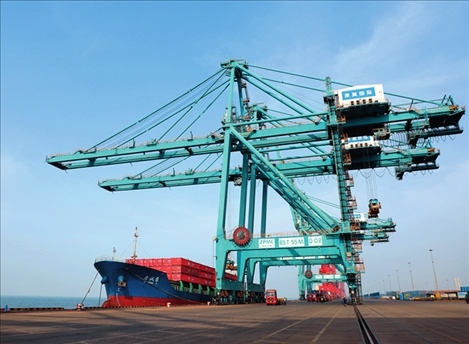 船舶??吭诤颖秉S驊港綜合港區(qū)集裝箱碼頭進(jìn)行卸船作業(yè)(2023年3月9日攝)。駱學(xué)峰攝/本刊