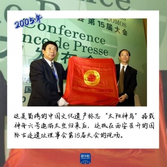 同年10月,“太陽神鳥”圖案的蜀繡作品搭乘“神舟六號”遨游太空,真正實現(xiàn)了“上天”!