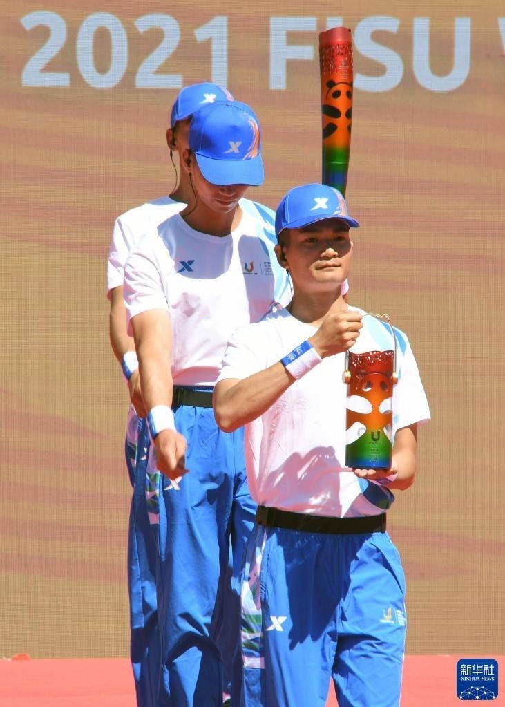 “大運(yùn)會(huì)火種是光明、團(tuán)結(jié)、友誼、和平的象征,代表了那些勇于挑戰(zhàn)高水平競(jìng)技體育并兼顧學(xué)業(yè)的青年大學(xué)生運(yùn)動(dòng)員們的技藝、勇氣和毅力?!眹?guó)際大學(xué)生體育聯(lián)合會(huì)代理主席雷諾·艾德在視頻致辭中說(shuō)。