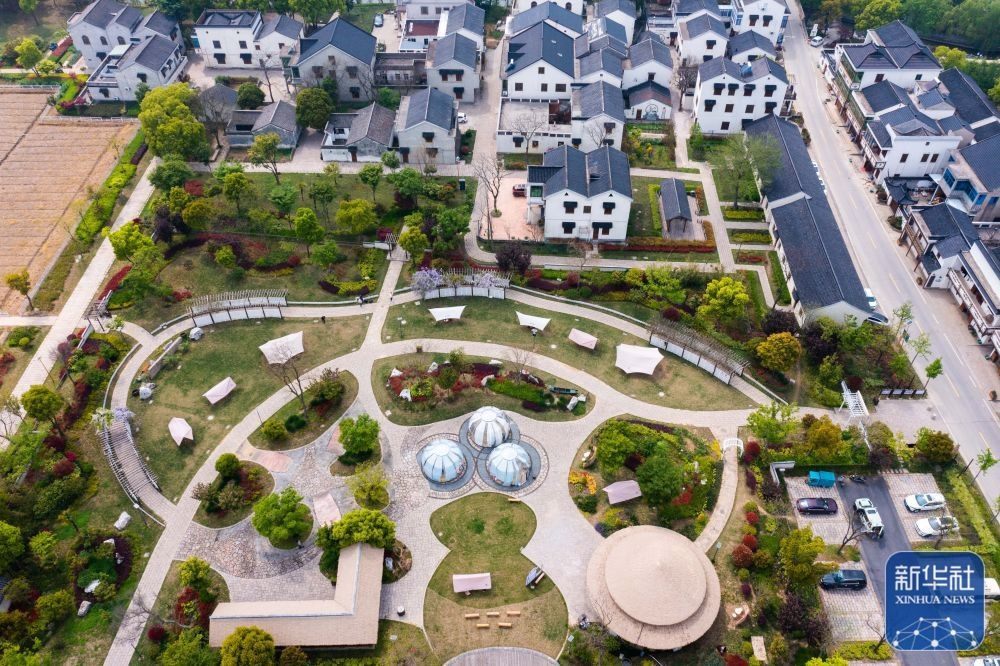 4月11日拍攝的浙江湖州市吳興區(qū)織里鎮(zhèn)伍浦村漁耕文化園的陶灣里鄉(xiāng)村咖啡店以及鄉(xiāng)村露營(yíng)地(無人機(jī)照片)。近年來,湖州市吳興區(qū)織里鎮(zhèn)依托當(dāng)?shù)孛利愢l(xiāng)村建設(shè)以及自然風(fēng)光,招引鄉(xiāng)賢返鄉(xiāng)創(chuàng)業(yè),用閑置民宅、閑置土地建設(shè)特色咖啡店、花海景觀、特色民宿和農(nóng)家樂等,做足鄉(xiāng)村旅游經(jīng)濟(jì)功課。新華社記者 徐昱 攝