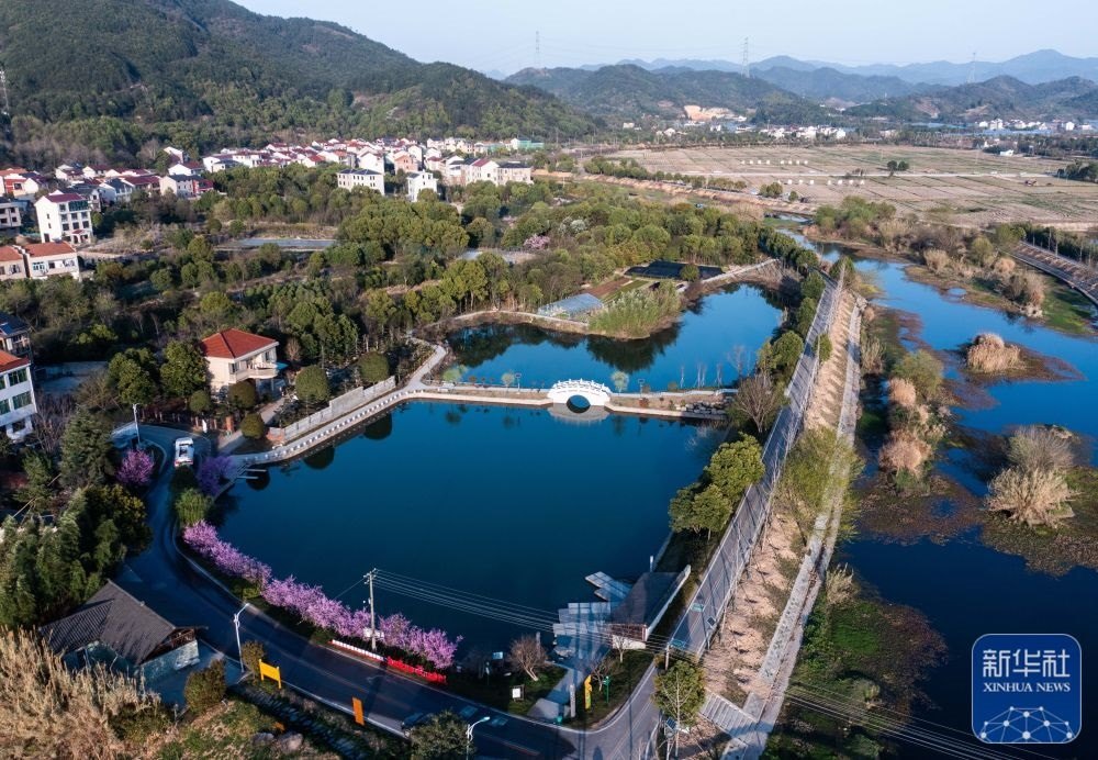空中俯瞰浙江金華市金東區(qū)嶺下鎮(zhèn)八仙溪及周邊村莊(3月14日攝,無人機(jī)照片)。近年來,嶺下鎮(zhèn)通過“抓源頭、強(qiáng)整治、做項(xiàng)目、重長(zhǎng)效”的治理思路,先后關(guān)停八仙溪沿岸多家制砂企業(yè)及養(yǎng)殖場(chǎng),清理河道垃圾,完成28個(gè)村農(nóng)村生活污水處理工程和51口池塘清淤,2018年以來八仙溪水質(zhì)常年保持在Ⅱ類以上。新華社記者 徐昱 攝