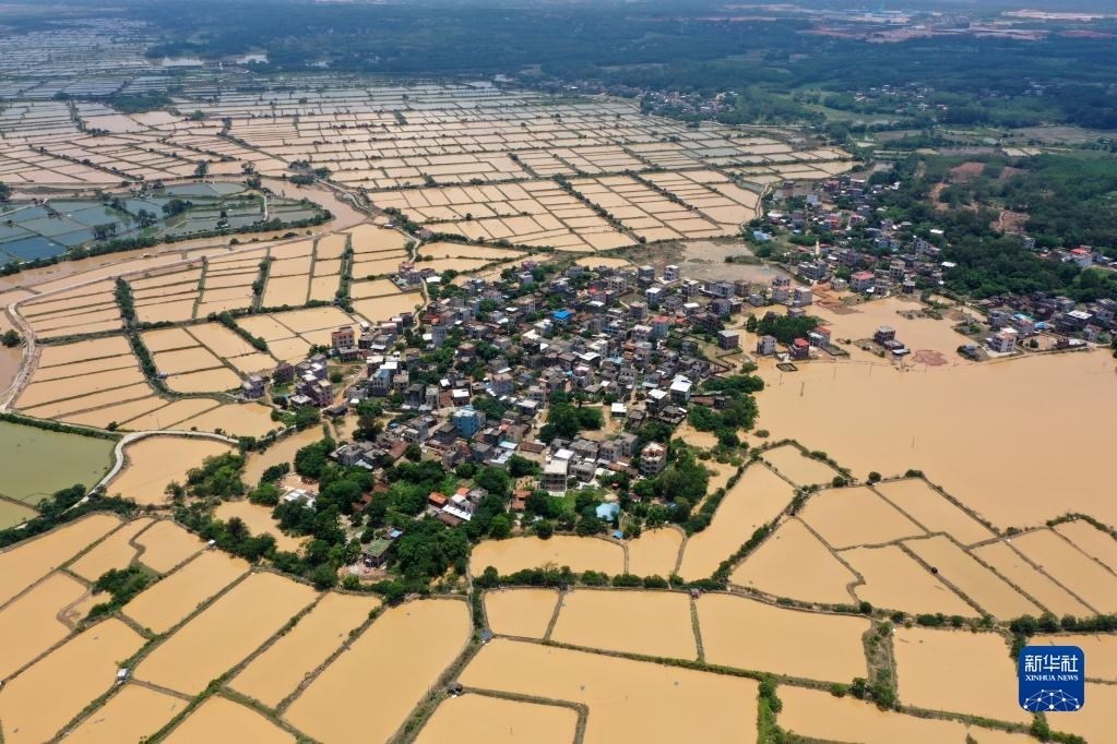 廣西合浦縣白沙鎮(zhèn)受強(qiáng)降雨影響的村莊(6月11日攝,無(wú)人機(jī)照片)。   新華社記者 陸波岸 攝