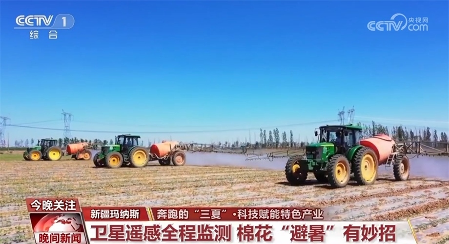 眼下,新疆昌吉瑪納斯縣的棉花正值現(xiàn)蕾期?,F(xiàn)蕾期指的是出現(xiàn)花蕾到開花這一段時間,這個時候棉株生長最快,然而持續(xù)的高溫給田間管理帶來考驗。在瑪納斯縣樂土驛鎮(zhèn)的棉花田里,三臺裝有北斗導航系統(tǒng)的大馬力拖拉機正按照預先設定的線路進行除草作業(yè)。這是農(nóng)技人員通過衛(wèi)星遙感棉花全程監(jiān)測技術,幫種植戶制定的科學田管方案。