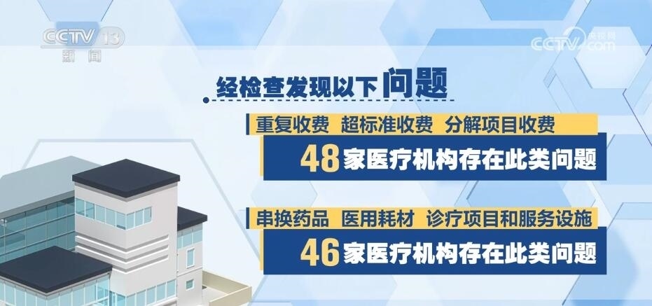 國家飛檢組共抽查了48家定點(diǎn)醫(yī)療機(jī)構(gòu),包括三級公立醫(yī)院40家、三級民營醫(yī)院3家、二級以下民營醫(yī)療機(jī)構(gòu)5家,經(jīng)檢查發(fā)現(xiàn)以下問題:一、重復(fù)收費(fèi)、超標(biāo)準(zhǔn)收費(fèi)、分解項(xiàng)目收費(fèi),48家醫(yī)療機(jī)構(gòu)存在此類問題。二、串換藥品、醫(yī)用耗材、診療項(xiàng)目和服務(wù)設(shè)施,46家醫(yī)療機(jī)構(gòu)存在此類問題。三、將不屬于醫(yī)?;鹬Ц斗秶尼t(yī)藥費(fèi)用納入醫(yī)?;鸾Y(jié)算,43家醫(yī)療機(jī)構(gòu)存在此類問題。四、違反診療規(guī)范過度診療、過度檢查、超量開藥,39家醫(yī)療機(jī)構(gòu)存在此類問題。此外,部分醫(yī)療機(jī)構(gòu)存在分解住院,藥品、醫(yī)用耗材進(jìn)銷存不符,未嚴(yán)格執(zhí)行國家組織藥品耗材集中帶量采購政策,按病種付費(fèi)模式下高靠病組、低標(biāo)準(zhǔn)入院等其他違法違規(guī)問題;一些醫(yī)療機(jī)構(gòu)存在虛構(gòu)醫(yī)藥服務(wù)項(xiàng)目問題。