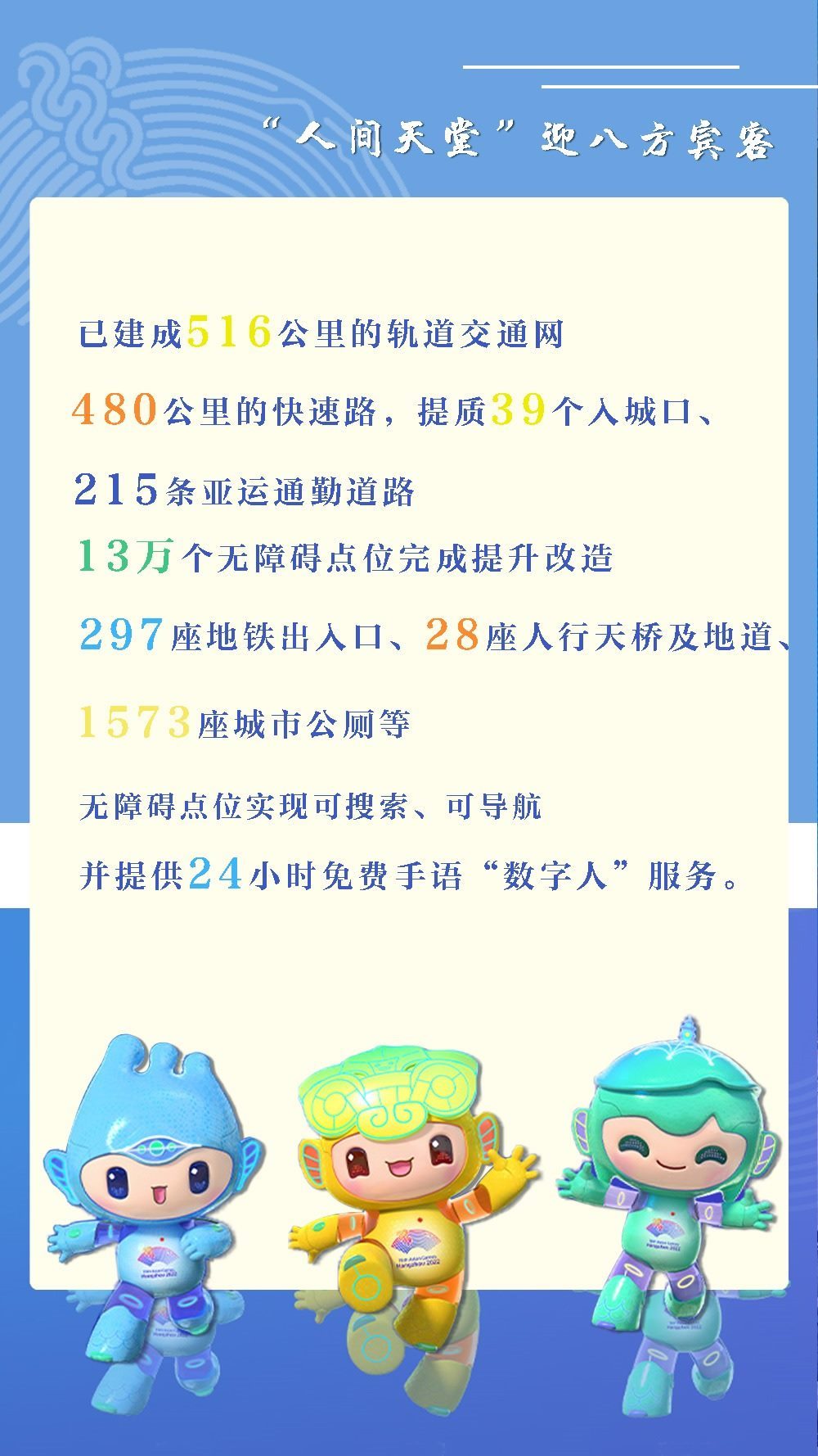 設(shè)置“1+4”抵離口岸,確定85家官方接待飯店,完成亞殘運(yùn)村727套無(wú)障礙客房和15大類(lèi)無(wú)障礙設(shè)施的升級(jí)改造。