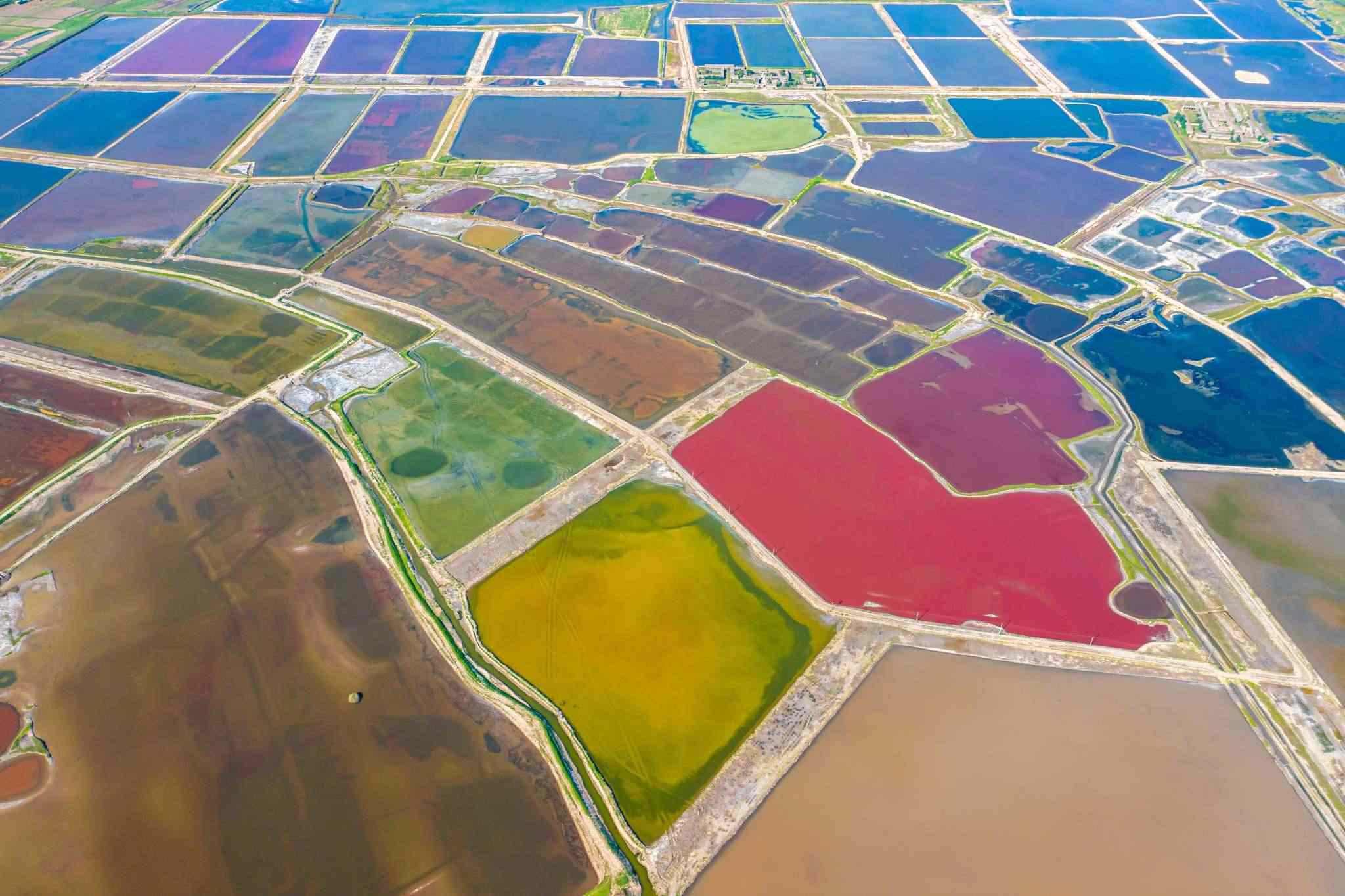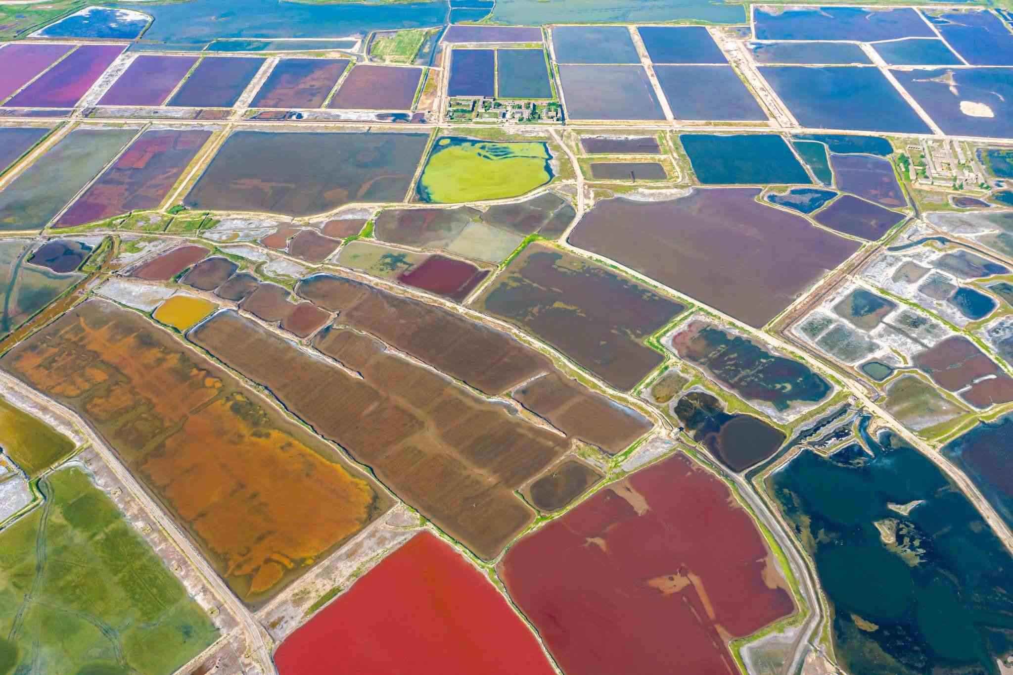 山西運(yùn)城:七彩鹽湖如大地調(diào)色板