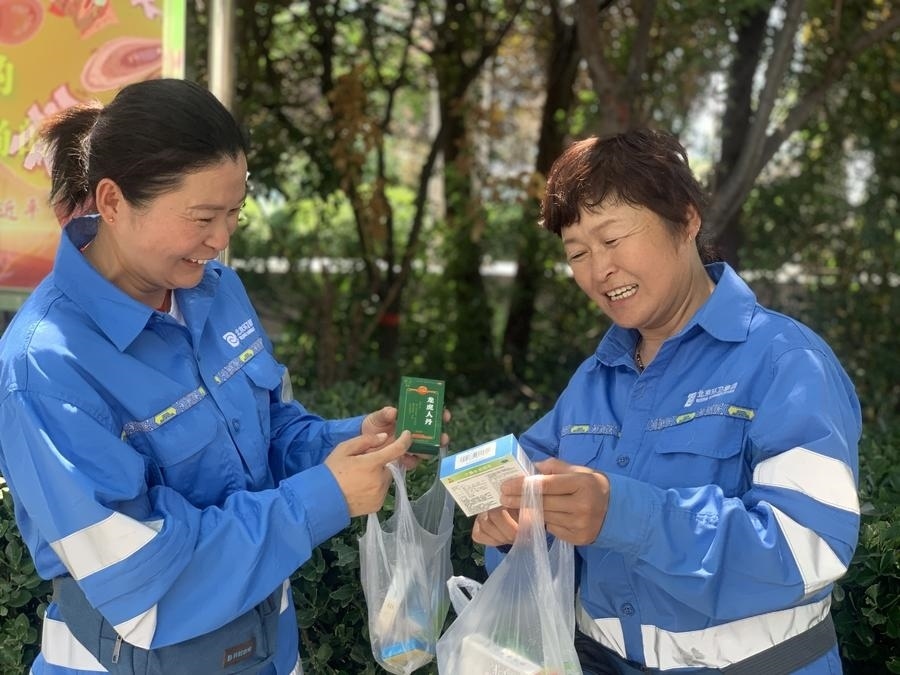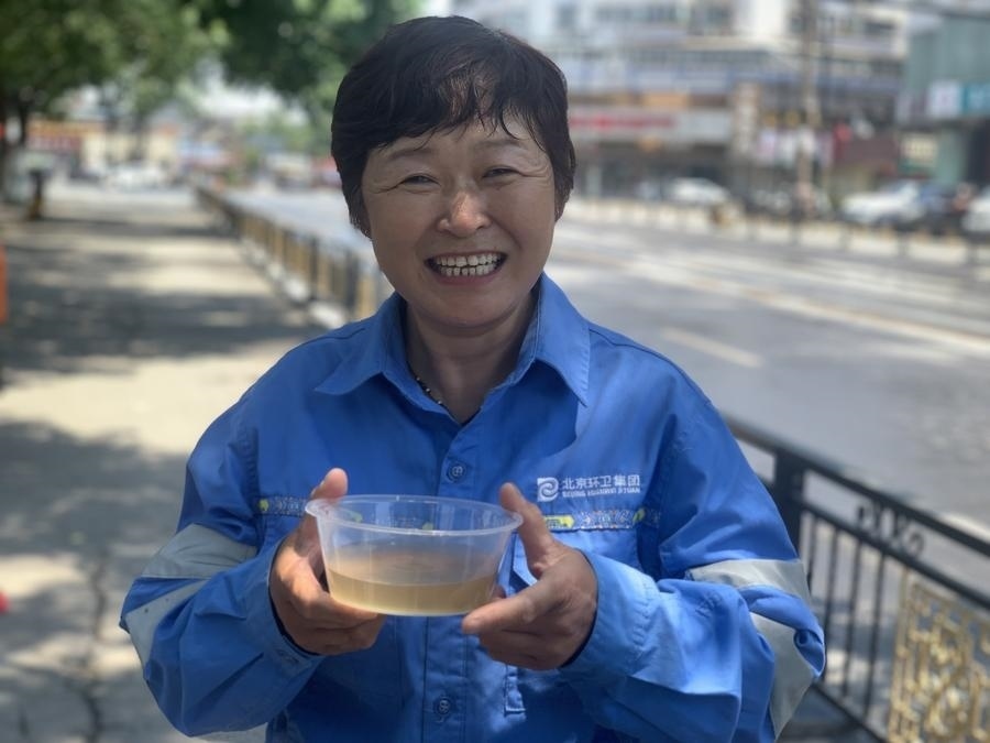環(huán)衛(wèi)管理部門(mén)為環(huán)衛(wèi)工準(zhǔn)備了綠豆水和防暑藥品。