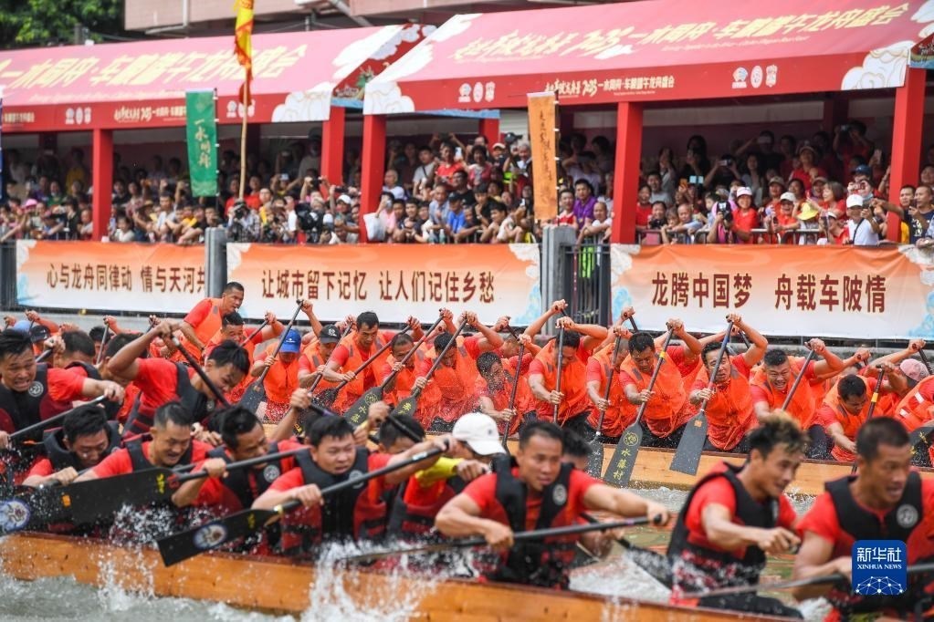 賽龍奪錦代表一種人生態(tài)度,更有著豐富的精神內(nèi)涵。對(duì)于車(chē)陂這樣的“城中村”而言,族人在端午回村里劃龍舟、吃龍船飯。龍舟如今既是留住文化記憶的重要載體,更是新都市如何留住老鄉(xiāng)愁的一份珍貴答卷。新華社記者 劉大偉 攝