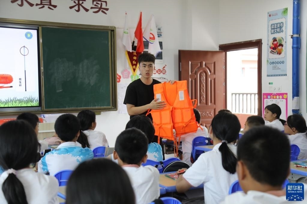 暑期臨近,江西省南昌市各縣區(qū)中小學校紛紛開展暑期安全教育主題活動,通過防溺水安全主題班會、安全知識培訓、自救技能培訓等方式提升學生的安全意識與防范危險能力,讓孩子們度過一個安全快樂的假期。新華社記者 彭昭之 攝