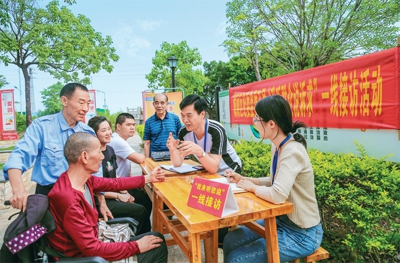 2023年5月24日,福建省莆田市城廂區(qū)紀(jì)委監(jiān)委在東海鎮(zhèn)大埔村開展“我聽群眾說訴求”一線接訪活動。 求是圖片 吳震/攝