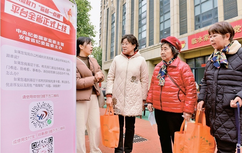 2023年2月17日,安徽省合肥市蜀山區(qū)井崗鎮(zhèn)紀(jì)委和衛(wèi)樓社區(qū)工作人員在引導(dǎo)居民關(guān)注了解小微權(quán)力“監(jiān)督一點(diǎn)通”平臺相關(guān)知識。 中新社發(fā) 葛宜年/攝