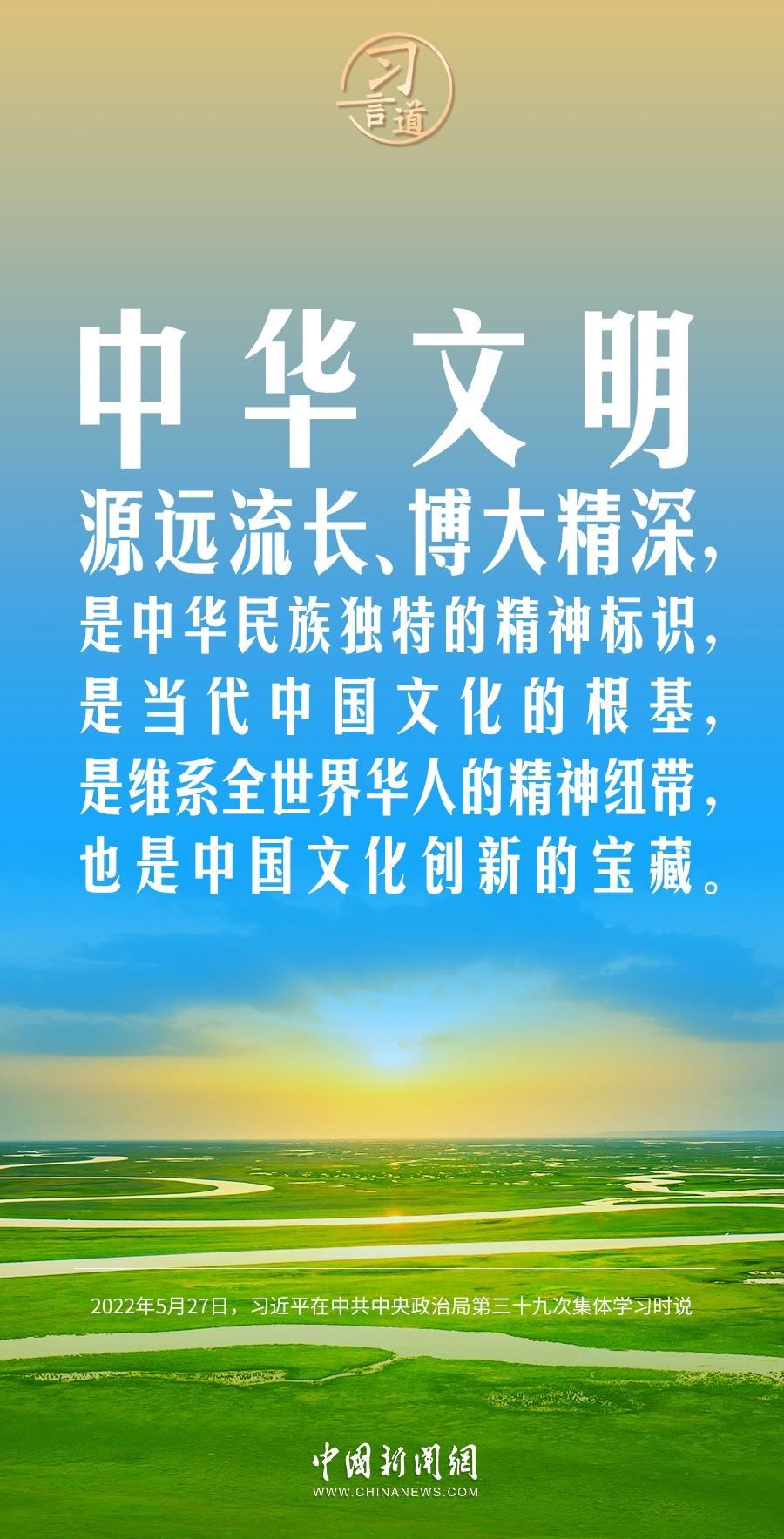 習(xí)近平總書記高度重視中華文明的傳承發(fā)展,多次作出重要論述,強(qiáng)調(diào)要建設(shè)中華民族現(xiàn)代文明。