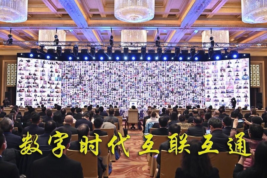 在北京舉行的世界數(shù)字教育大會上,全球萬名師生云合奏合唱(2023年2月13日攝)。世界數(shù)字教育大會以“數(shù)字變革與教育未來”為主題,超過130個國家和地區(qū)的代表參會。