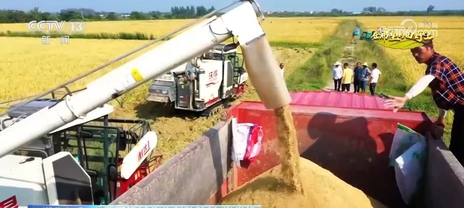 央視網(wǎng)消息:稻花香里說(shuō)豐年,時(shí)下,湖北各地陸續(xù)進(jìn)入了秋糧收割的關(guān)鍵時(shí)期。在孝感市孝南區(qū),這里的30萬(wàn)畝糯稻迎來(lái)了豐收,稻田換上了一身亮麗“金裝”。