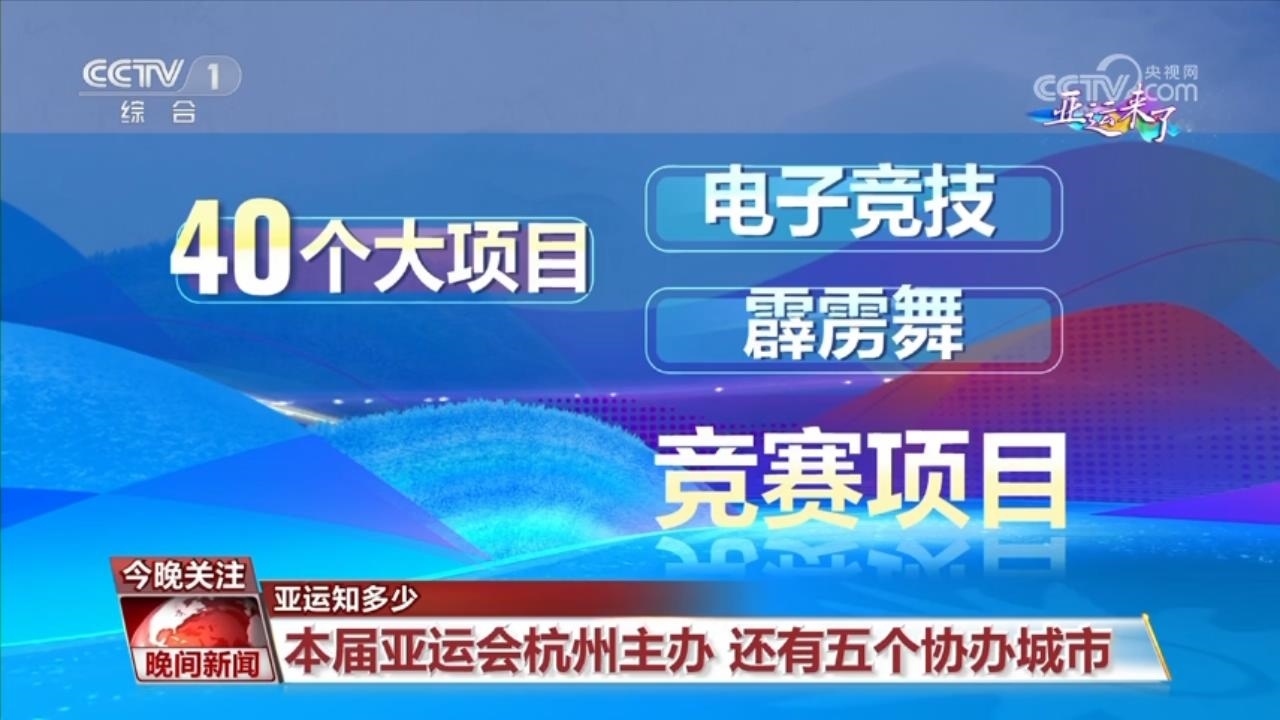 杭州亞運會以杭州為主辦城市,寧波、溫州、湖州、紹興、金華為五個協(xié)辦城市。本屆亞運會競賽項目在保持40個大項目不變的前提下,增設電子競技、霹靂舞兩個競賽項目。16個比賽日,預計共產(chǎn)生482枚金牌。?
