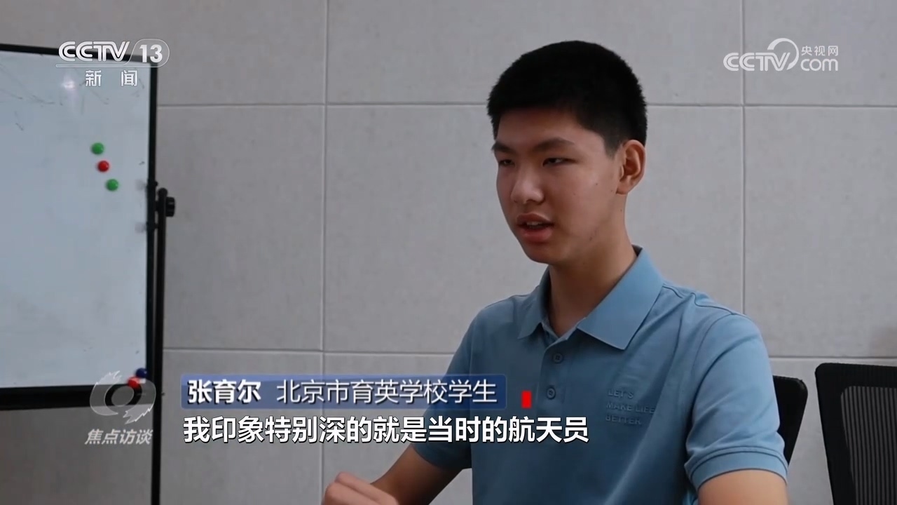 北京市育英學(xué)校學(xué)生張育爾:“我印象特別深的是當(dāng)時(shí)航天員拿針筒把氣泡注射到水里,然后形成了一個(gè)類似于放大鏡的視覺(jué)效果,看到這個(gè)感覺(jué)很新鮮、很科幻,一開始是好奇心驅(qū)動(dòng)了,后來(lái)就開始了解這方面的東西。”