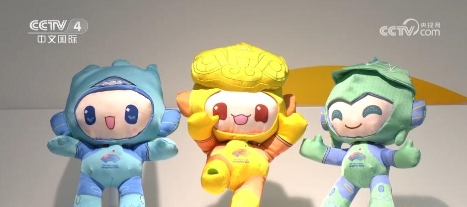 亞運會特許商品零售店店長 陳晨:賣得最好的就是亞運吉祥物三寶。補貨上來之后,立馬空掉,然后再補、再空,再補、再空,我們基本每天最少保證一次的補貨量。