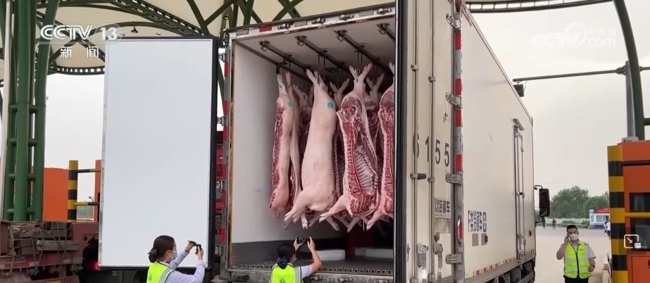 為了保障肉品質(zhì)量,在這家保供基地生豬屠宰后,會(huì)馬上進(jìn)入預(yù)冷車間,預(yù)冷2小時(shí)之后再轉(zhuǎn)運(yùn)到冷鏈車上,運(yùn)輸全程制冷。另外,當(dāng)?shù)卣瓦\(yùn)管部門(mén)也同步強(qiáng)化服務(wù),在檢疫、運(yùn)輸、轉(zhuǎn)運(yùn)等多個(gè)環(huán)節(jié)提供便利。