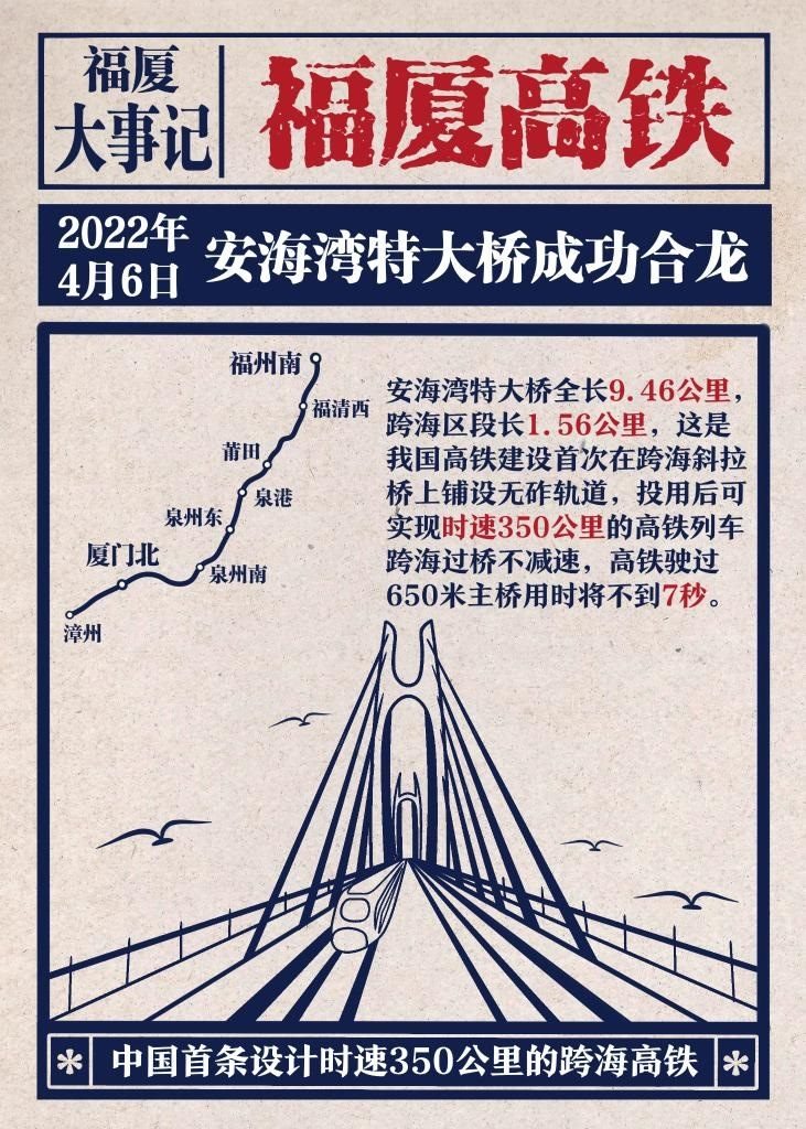 我國首條設(shè)計(jì)時(shí)速350公里的跨海高鐵——福廈高鐵正式開通運(yùn)營