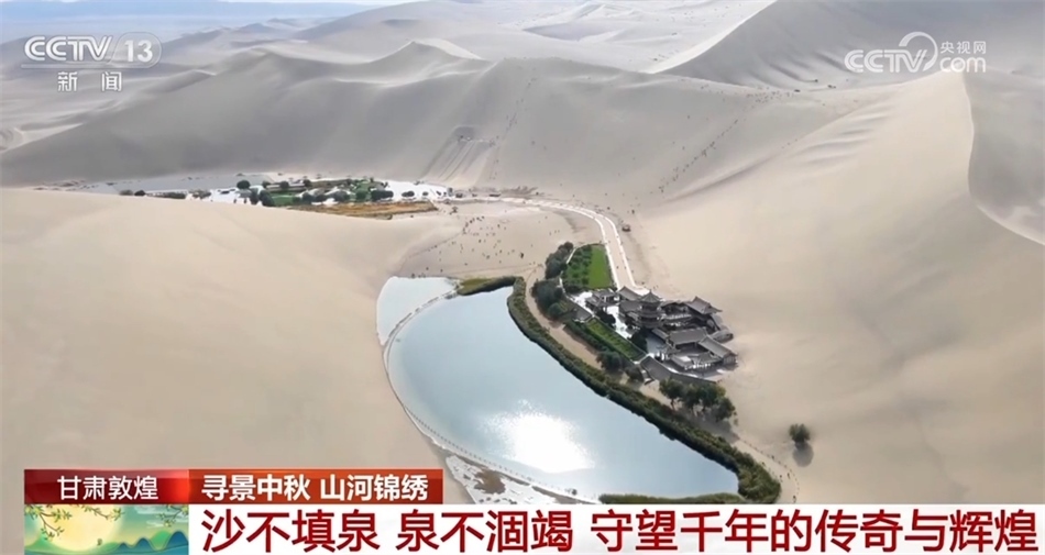 風(fēng)卷飛沙,月牙泉水卻始終碧波蕩漾,這里是甘肅敦煌。沙不填泉,泉不涸竭,鳴沙山與月牙泉就這樣守望千年,也吸引著世界各地的人們前來領(lǐng)略瀚海風(fēng)光。今年中秋和國慶假期,景區(qū)游客數(shù)量預(yù)計(jì)突破20萬人次。古道駝鈴,沙漠綠洲,風(fēng)聲、水聲伴著沙丘移動(dòng)的聲音,千百年來,大自然一直在用最恢弘的方式訴說著一個(gè)天地之間的傳奇與輝煌。