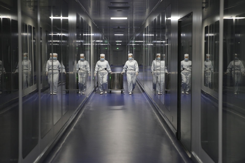 在中國(黑龍江)自由貿(mào)易試驗區(qū)哈爾濱片區(qū)的哈爾濱派斯菲科生物制藥股份有限公司生產(chǎn)車間內(nèi),工作人員在進行生產(chǎn)作業(yè)(2020年11月13日攝)。新華社記者 張濤 攝