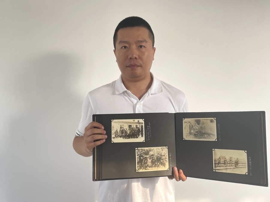 侵華日軍第七三一部隊罪證陳列館研究人員金士成展示日軍侵華戰(zhàn)時照片。新華社發(fā)(侵華日軍第七三一部隊罪證陳列館供圖)